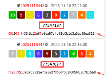 哈希赛车B说明: 系统会依据波场(TRON)公链上每3秒一条的区块哈希值,先省略掉前面16位后从左往右读取10位不重复数字,其中0代表10,做为开奖结果。 1 若数字只够抓取9个,则所缺少的数字䃼充在最后做为第10名球号。 2 若出现数字只够抓取8个,则从左往右认字母代替,做为第9名球号,a代表1,6。b代表7,2。c代表3,8。d代表9,4。e代表5,10。然后再以所缺少的数字同样䃼充在最后做为第10名球号。 3 若数字罕见只够抓取7位,则按照第二条的方式,从左往右取两个字母代替,依次作为第8、9名球号,两个字母取完后,第10名自动补齐。 4 若出现数字只够抓取6位及以下,或所需字母不足则该期取消,不开奖。 5 每天固定读取北京时间早7:01整的区块哈希值为第一期开奖结果,后每180秒读取开出下一期(如公链罕见出现不是3秒一条,为避免争议,系统最终还是以180秒最接近的下一条数值为下期开奖依据),次日北京时间早4:01为最后一期,全天420期。全年365天不休息。 Q1、什么是区块哈希值(Block hash)? 区块哈希值是一段数据的DNA,每个区块哈希值都是唯一的、随机的,且不可篡改。 点击查看哈希值介绍(https://baike.baidu.com/item/Hash/390310) Q2、什么是区块链? 区块链从本质上来讲,它是一个共享数据库,存储于其中的数据或信息,具有不可伪造、全程留痕、可以追溯、公开透明、集体维护等特征。 点击查看区块链介绍 (https://baike.baidu.com/item/%E5%8C%BA%E5%9D%97%E9%93%BE/13465666) Q3、如何在链上验证开奖结果? 1、通过点击红色箭头位置的区块哈希值,可以直接跳转至波长浏览器,对比两者数据是否一致; 2、或手动打开波长浏览器(https://tronscan.org),在网页最上方的搜索框输入下图方框中的数值,点击搜索后,在搜索框下方第三行出现的“Block Hash”数值,即为对应的本期开奖结果的区块哈希。![]()